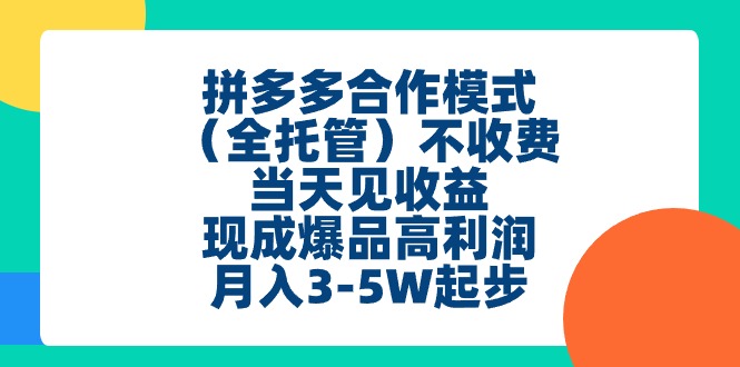 [国内电商] (11091期)拼多多合作模式(全托管)不收费、当天见收益、现成爆品高利润,月入3-5w |